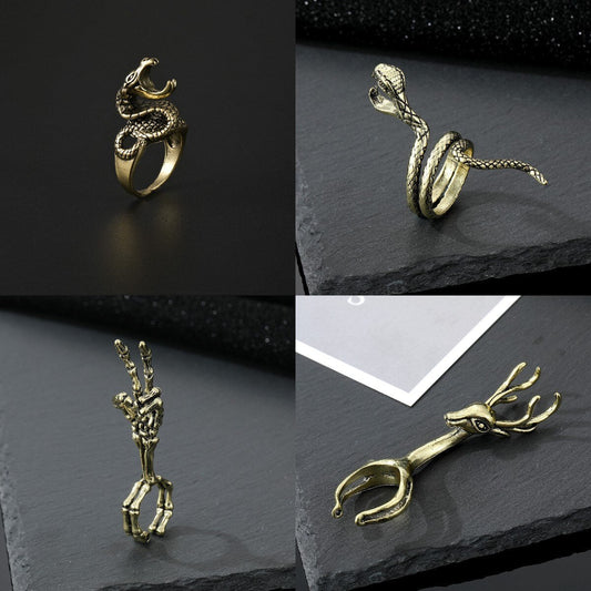 Retro Mystical Time Brass Dragon Ring