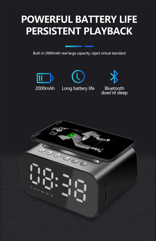 Wireless Dijital Alarm Clock Phone Charger Speaker